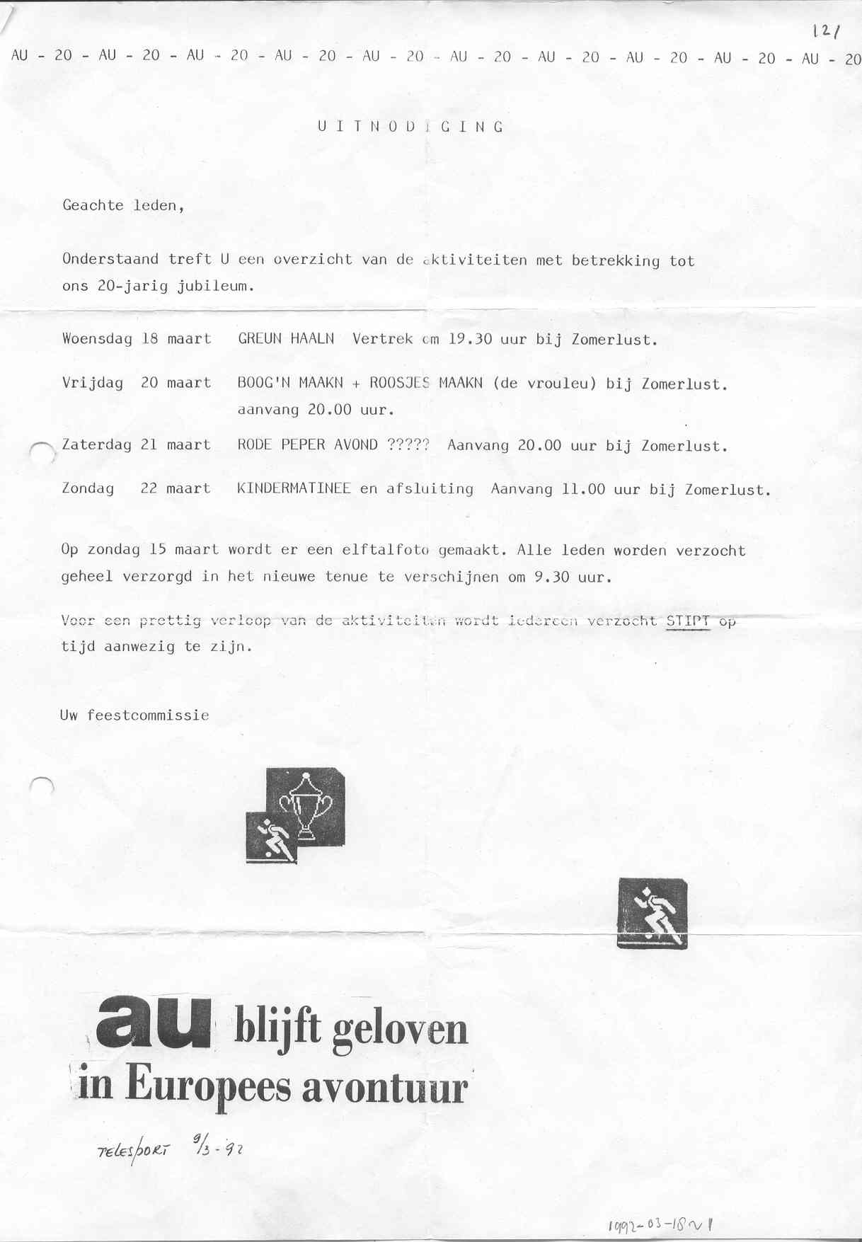 Aogel United bestond op 18 maart 1992 twintig jaar en dit was reden om dat